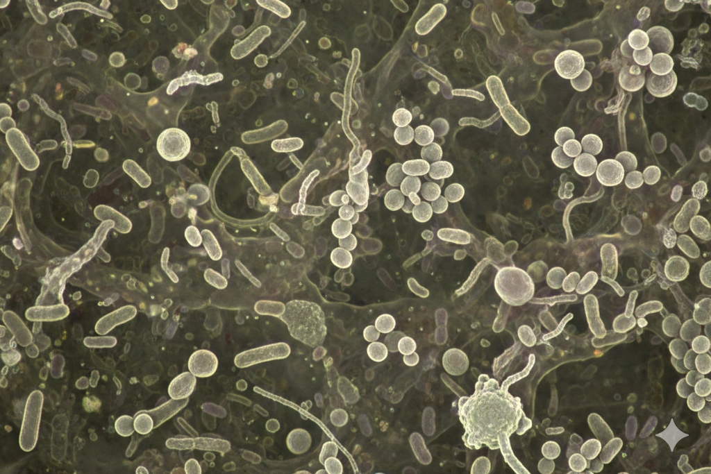 お口の中には食べかすだけでなく、数千億個もの細菌が潜んでおり、それが集まったものが「バイオフィルム(汚れ・細菌の膜)」です。