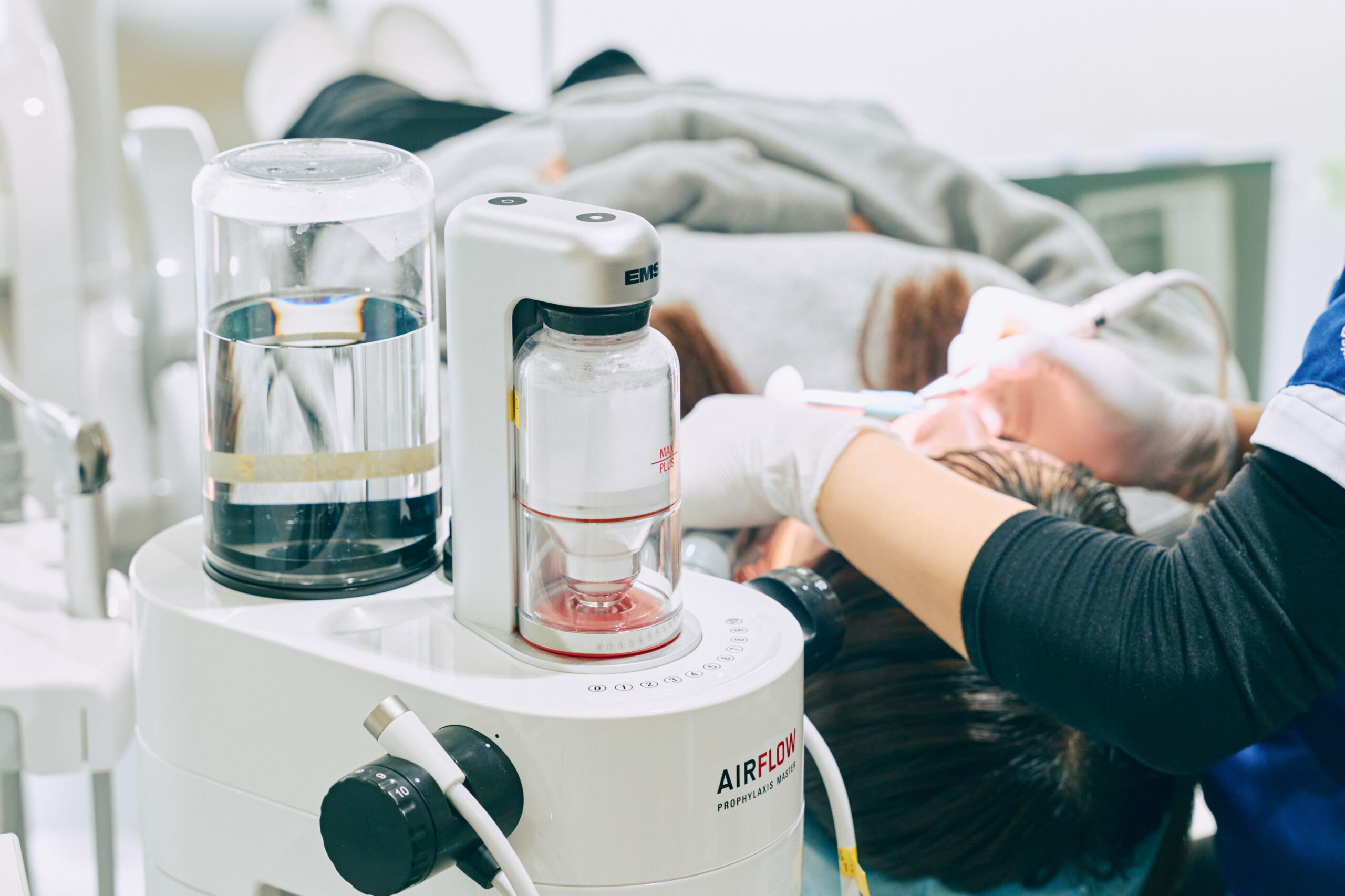 そこで当院では、微細なパウダーを吹き付けて歯の表面の汚れや着色を落とす機器「エアフロー」を導入しています。